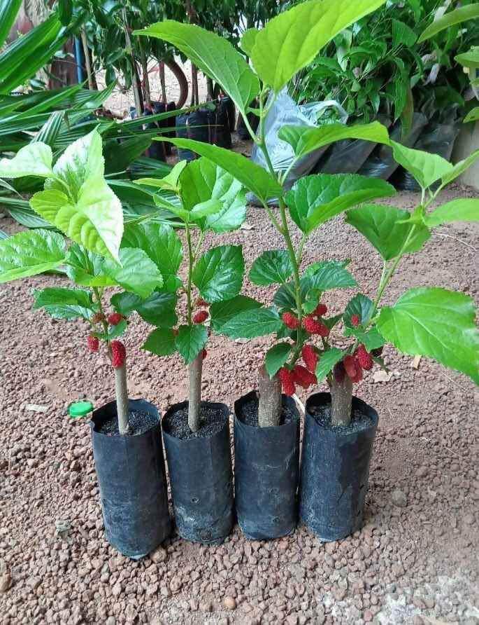 ผลหม่อนเริ่มเก็บได้เมื่ออายุ 4–6 เดือนหลังปลูก